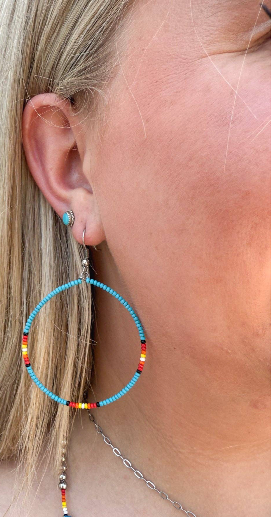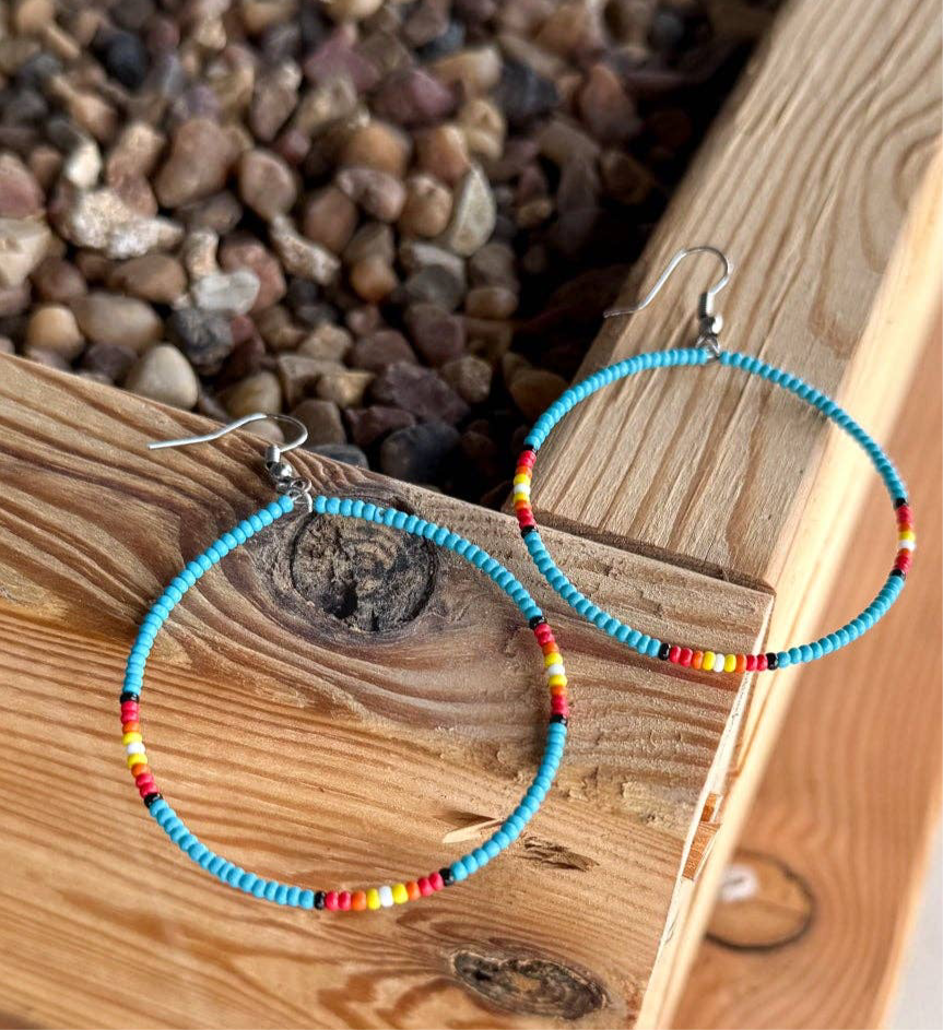 These Osage Hoops are the perfect pop of color for any outfit. These hoops are light weight and easy to style with any outfit!